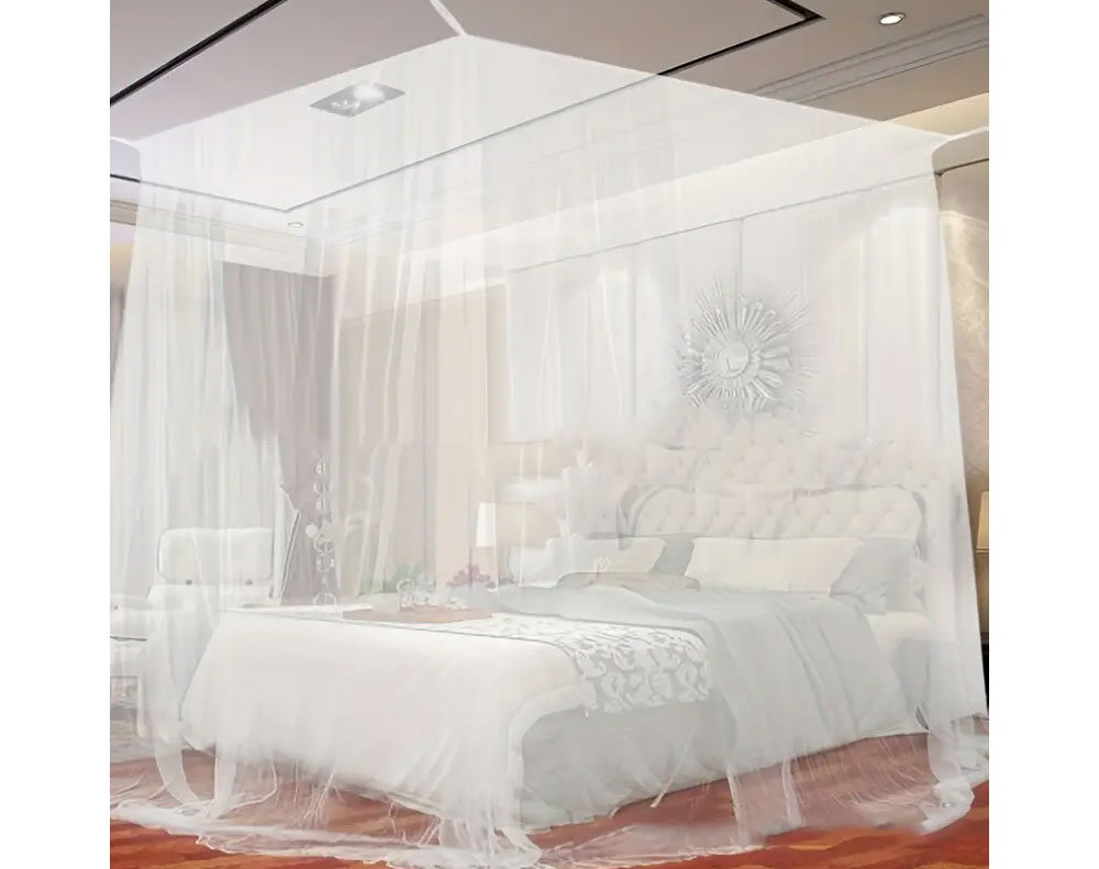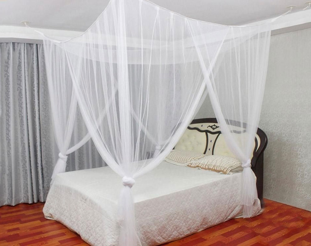 This universal square mosquito net features four open doors design, very convenient for you to go to bed and go out easily from four directions. The pure white color will give an instant touch of elegance and romance to the decor while guarding you from those nasty mosquito bites at the same time.